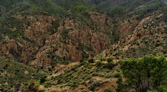 To the South and East of Cottonwood are the Black Hills Range and Mingus Mountain, which towers above to 7,818 ft (2,383 m). Black Canyon Trail was recommended to me as the kind of scenic hike that I was hoping to find. My GPS tells me went about 17 km (10 miles) in and out. I stopped at a forest road the crosses the mountainside above, but I understand that if I had the time I could have kept on going to the top of the mountain. As you ascend the trail you get big views to the North of the Verde Valley up to the red rock country at Sedona. It’s a good cardio workout as well with an elevation gain of over 2,000 feet on the section I hiked.