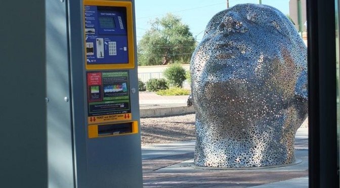 new to the city this year. The streetcar line is about a four mile route that connects the Menlo Park neighborhood to the West with the University of Arizona campus to the East. Between are Tucson’s Central Business District and the 4th Avenue district. It was built and stood up with about a $200 million investment. One percent of the total was put toward public art at the stops and the operations facility.